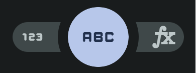 Nad diagramem urządzenia zobaczysz okrąg z literami „ABC” w środku. Okrąg, wraz ze „skrzydłami” po lewej („123”) i prawej stronie („fx”), tworzy selektor warstw. Możesz wybrać dowolny z nich, aby zobaczyć klawisze przypisane do poszczególnych warstw.