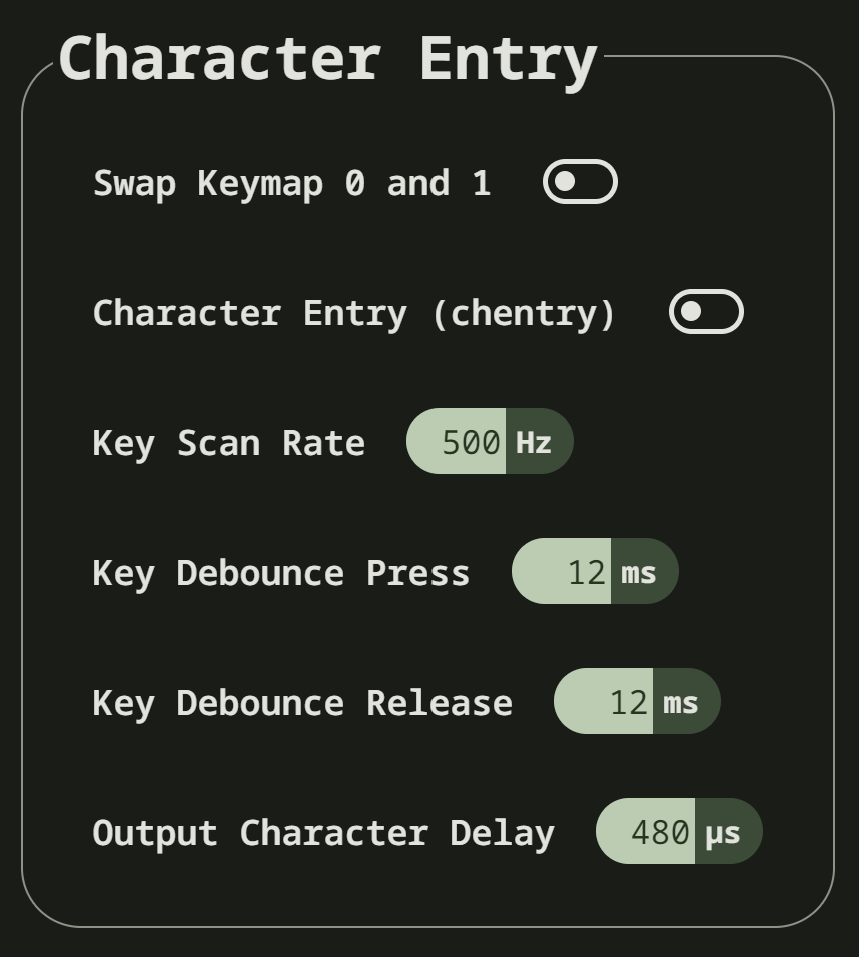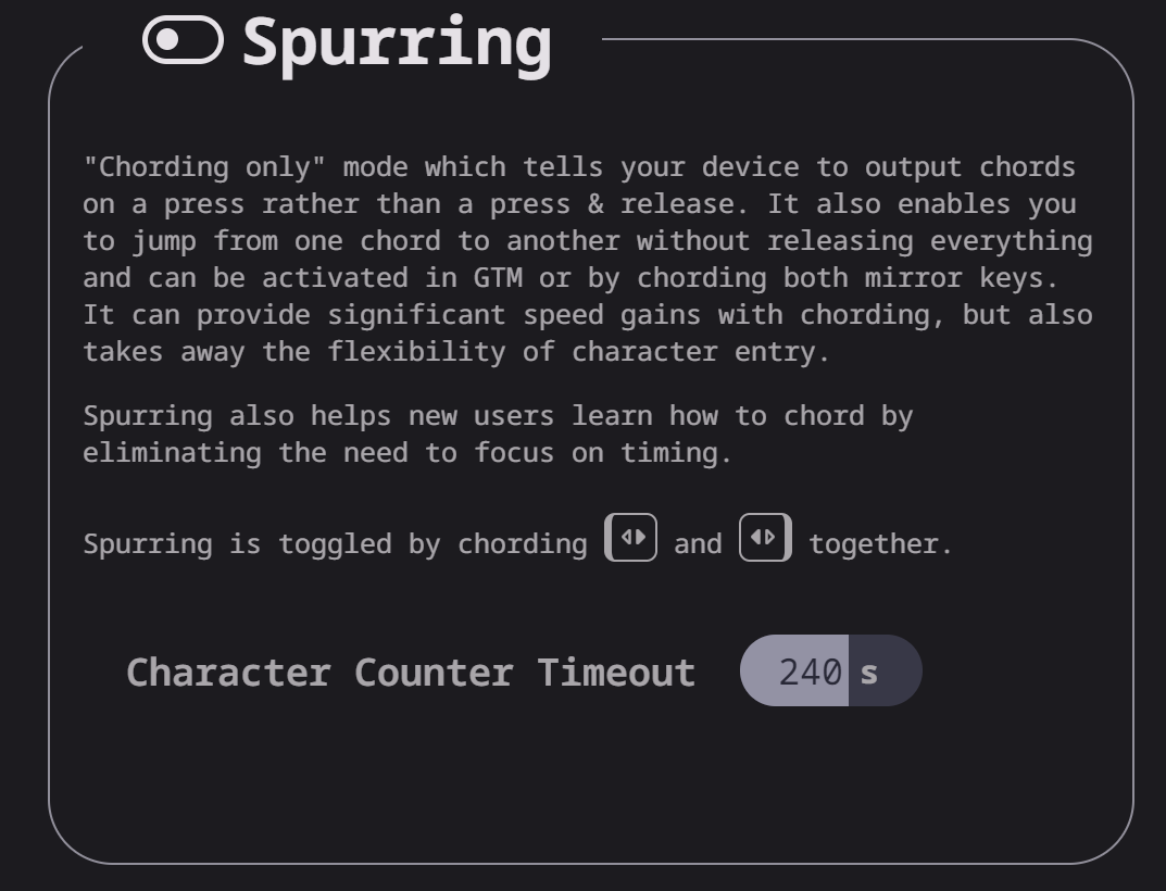 Urządzenia CCOS posiadają licznik czasu, który uruchamia się po każdym wprowadzeniu znaku w trybie tradycyjnego wpisywania znaków (chentry, czyli wpisywanie litera po literze). Ten licznik decyduje, czy kolejny wykonany akord usunie poprzedzające znaki.