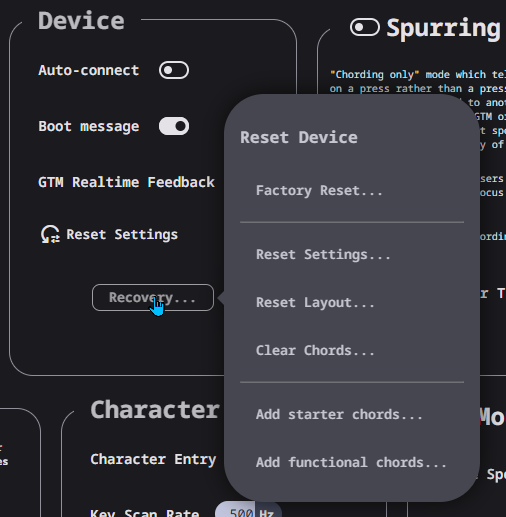 Menedżer Urządzeń CharaChorder to kompleksowe narzędzie dla użytkowników urządzeń z systemem CCOS. Oferuje wysokiej jakości grafikę, animacje i prosty interfejs użytkownika. W Menedżerze Urządzeń możesz zmieniać układ, zarządzać swoją biblioteką akordów, oraz dostosowywać ustawienia swojego urządzenia.